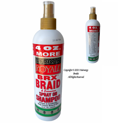 African Royale BRX BRAID and Extensions Spray on SHAMPOO. 12 FL. OZ. (355ml)